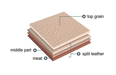 Cuando una vaca es sacrificada, la piel se retira en una capa. Más tarde en la curtiduría, la capa exterior de la piel se separa de las capas internas de piel. Esta capa externa de piel se conoce como el “grano superior ó Piel Flor” y las otras capas de piel se denominan “pieles divididas”.